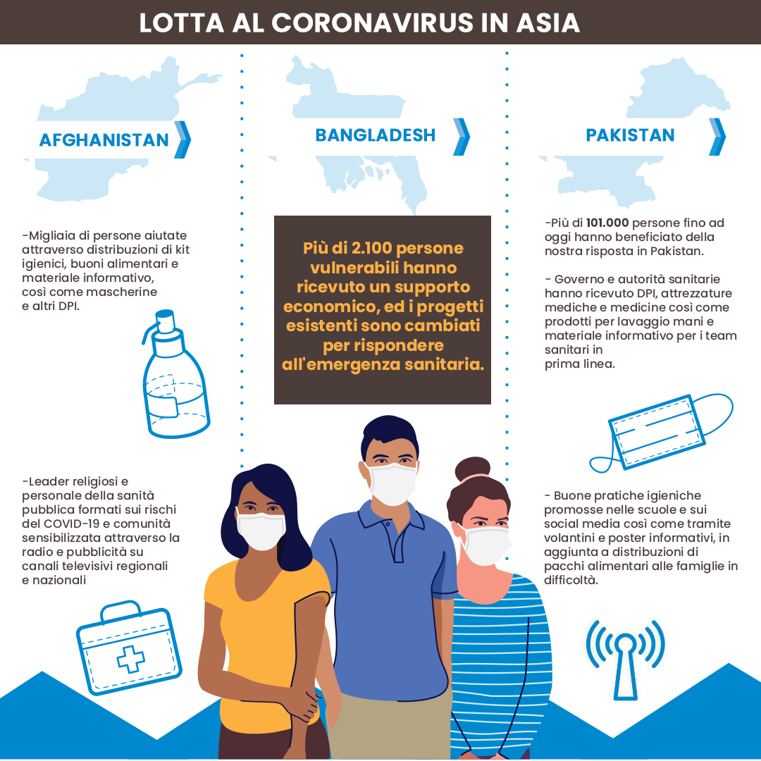 Grazie ai nostri generosi partner e sostenitori, siamo riusciti a rispondere all’emergenza coronavirus in più di 30 paesi. Di seguito, vi elenchiamo alcune delle attività svolte in alcuni dei paesi che avete avuto più a cuore durante questa emergenza.