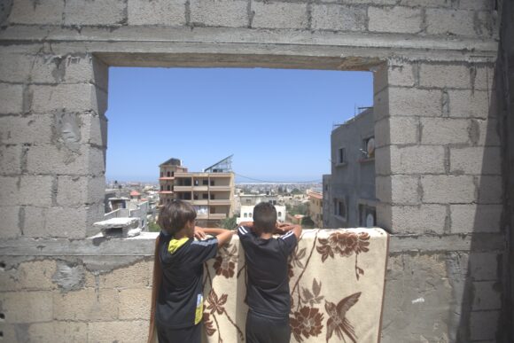 Nel recente bombardamento di Gaza, ho dovuto fuggire da casa nostra. I miei figli ed io tremavamo di paura. Abitiamo sul tetto ora, in una casa composta da due stanzette, il soffitto è in lamiera.