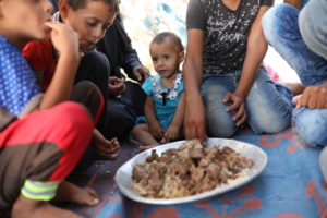 L’assistenza esterna è ciò che ci sta tenendo in vita. Facciamo affidamento su prodotti alimentari di base che ci danno in beneficenza per aiutarci. È molto difficile vivere qui, anche quando lavoro in fattoria ricevo il pagamento sotto forma di verdure ed altri alimenti e non in denaro. Non sono in grado di acquistare carne fresca, pollo, pesce o frutta fino a quando non ne ricevo sostegno economico ogni tre mesi. Non poter acquistare la carne influisce sulla nostra salute e influenza anche i nostri sentimenti ed emozioni. I miei piccoli sono giovani e continuano a crescere, noto che sono pallidi e deboli e mi sento in colpa per non essere in grado di fornire loro ciò di cui hanno bisogno. Però alhamdulillah ho un tetto sotto il quale stare al riparo e dei rimasugli di cibo. Quasi tutti i giorni dormiamo senza cena. Cuciniamo all’aperto perché non possiamo permetterci il gas. I miei figli vanno a scuola e voglio che continuino a frequentarla. Non posso sopportare il pensiero che i miei figli dovranno affrontare il mio stesso destino. Preferisco lottare e morire di fame purché vadano a scuola e abbiano un futuro migliore. Devo ammettere che l’Eid per me è un’occasione piuttosto triste. Il non comprare nuovi vestiti del Eid per i bambini o caramelle e dolciumi mi rende davvero triste. Durante quest’occasione non ci permettiamo di andare da nessuna parte; perché quando i miei piccoli mi chiedono soldi per giocare con altri bambini e io non ne ho.. quindi preferisco stare a casa. La povertà uccide la felicità e soffoca i sogni. Il pacchetto di carne Qurbani che ci viene donato da Islamic Relief non avete idea di quanto faccia la differenza nelle nostre vite. E’ I’unica occasione che mi permette di vedere tutta la famiglia riunita e felice. Mia moglie è finalmente felice di poter preparare piatti a base di carne per tutti noi!