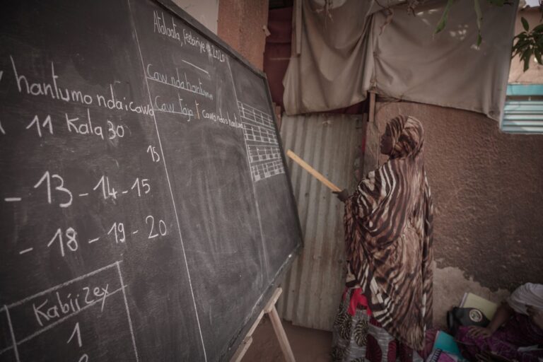 Nella zona densamente popolata di Lazaret di Niamey, la capitale del Niger, un gruppo di donne è riunito in un complesso. Alcune sono sedute sulle stuoie e seguono un corso di alfabetizzazione per adulti. Ognuna sta scrivendo su un quaderno, mentre segue attentamente ciò che l’insegnante sta spiegando.
