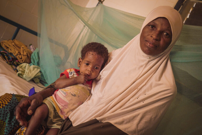 In a nearby bed sits Fati, 30, from Deiberi. Fati had gone to an antenatal clinic in her village with her 20-month-old baby when medical staff reported terrible news. “I was told that my daughter is very ill and had to be admitted to the hospital’s nutrition center . “